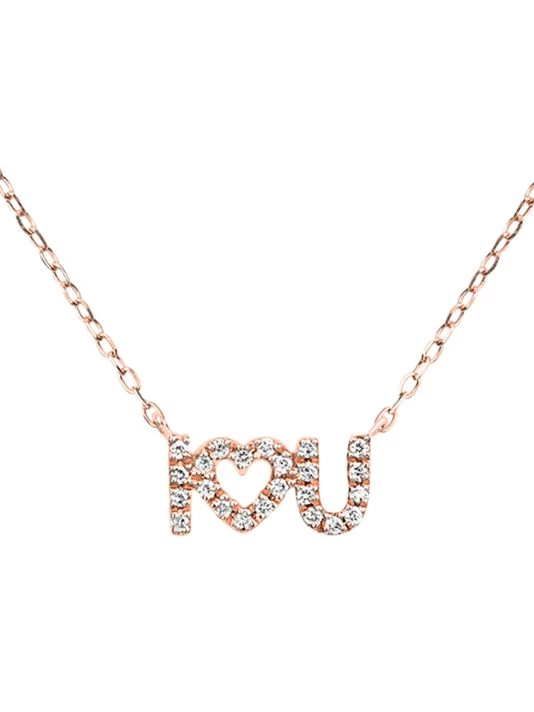 From the Magic Touch Collection. Crafted of 18K rose gold, this necklace features a white-diamond-encrusted ‘I Love U’ pendant joined to a delicate cable chain.