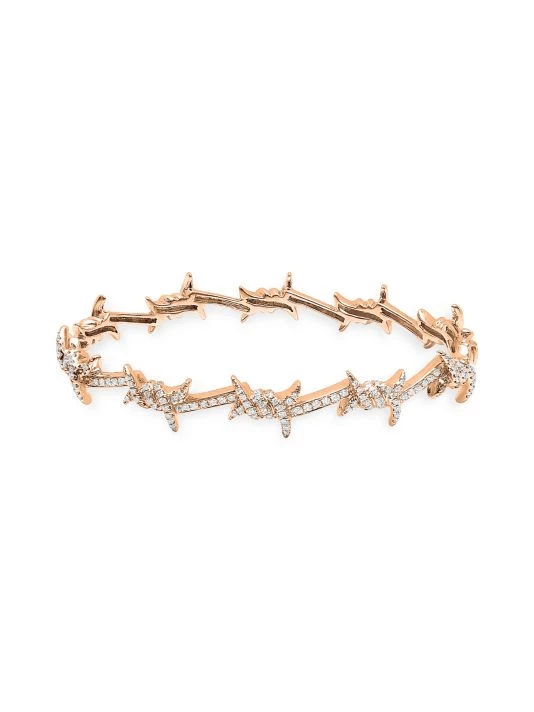 Featuring a barbed-wire-inspired silhouette, DJULA’s 18K-rose-gold Barbelé bangle shimmers with pavé diamonds. This edgy accessory is from the Parisian label’s Homme Collection, a tribute to audacious and bold urban men.