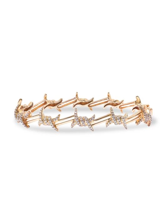 From the Barbelé Collection. Sculpted into a barbed wire shape, this bold bracelet features diamond pavé for shine.