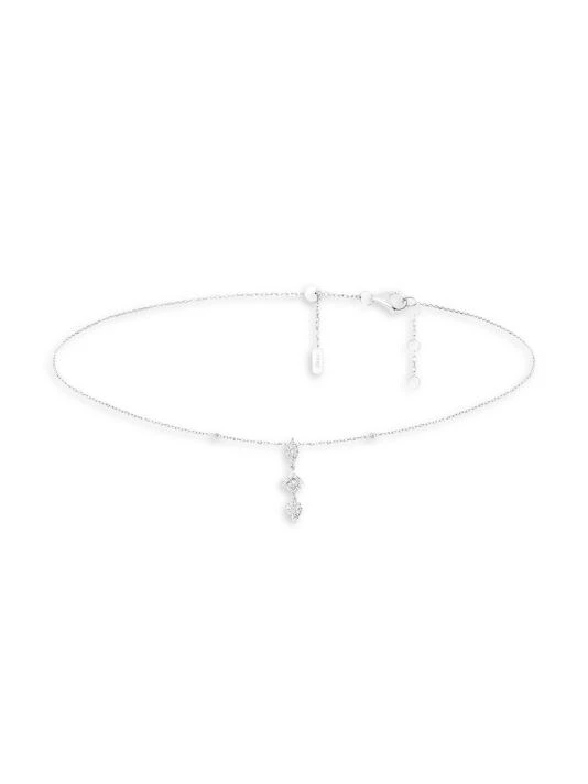 From the Delicacy Collection. Made of 18K white gold, this DJULA necklace features three linear geometric-shaped charms embellished with shimmering round and baguette white diamonds.