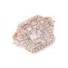 From the Eclat Collection. This 18K rose gold Djula chain ring features a glittering baguette white diamond framed by a hexagonal halo of pavé diamonds. Founded in 1994 by Alexandre Corrot, the Parisian jewelry label is world-renowned for its modern yet timeless designs.