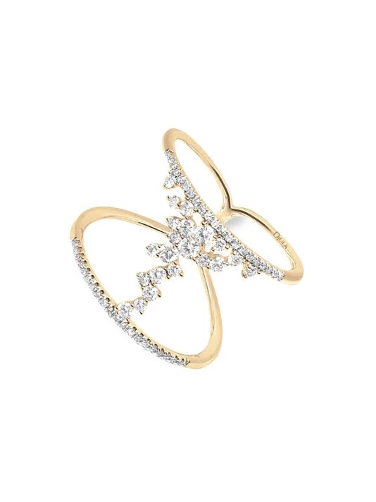 From the Fairytale Collection. Designed by DJULA founder Alexandre Corrot, this exquisite ring is handcrafted of 18K yellow gold set with white diamonds illuminating its caged silhouette.