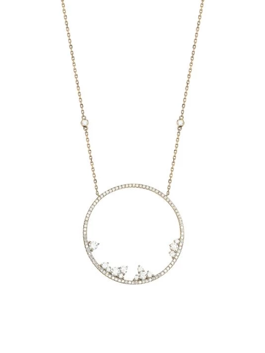 From the Fairytale Collection. Handcrafted of polished 18K yellow gold, this exquisite necklace features a circular pendant embellished with clusters of sparkling round white diamonds.