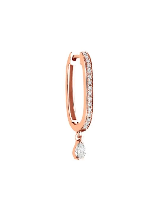 From the Glam Rock Collection. Made of diamond-encrusted 18K rose gold, this elegant oval hoop earring is tipped with a petite pear-shaped white diamond drop.