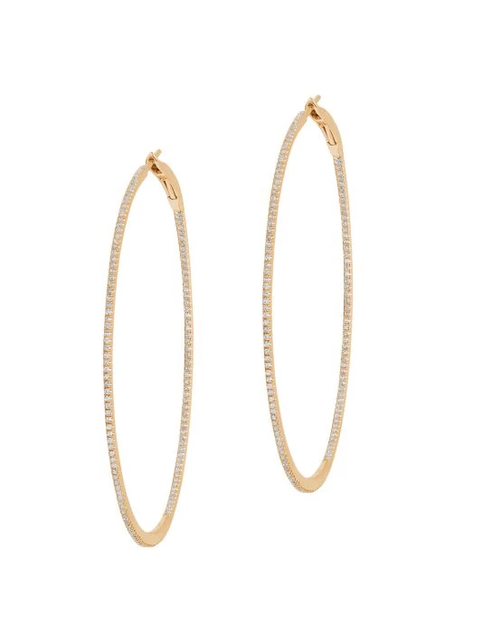 From the Graphique Collection. Diamond pavé adds shine to these hoop earrings, giving the appearance of a ring of light.