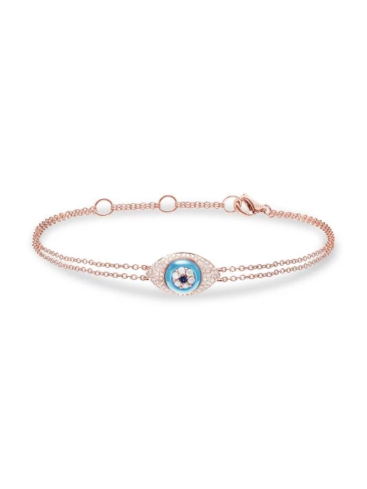 From the Magic Touch Collection. Diamond pavé surrounds the turquoise center of this evil eye bracelet, crafted from delicate rose gold chain.