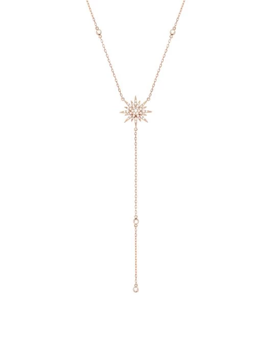 From the Soleil Collection. Inspired by the grandeur of Louis XIV and the radiance of Place Vendôme, this exquisite 18K rose gold Y necklace features a sun pendant that shimmers with pavé white diamonds.