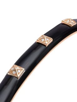 DJULA’s 14K-rose-gold Spike bangle is embellished with black enamel and glittering diamond-encrusted pyramid studs. Designed by brand founder and artistic director Alexander Corrot, this edgy accessory is from the Parisian label’s Homme Collection, a tribute to audacious and bold urban men.