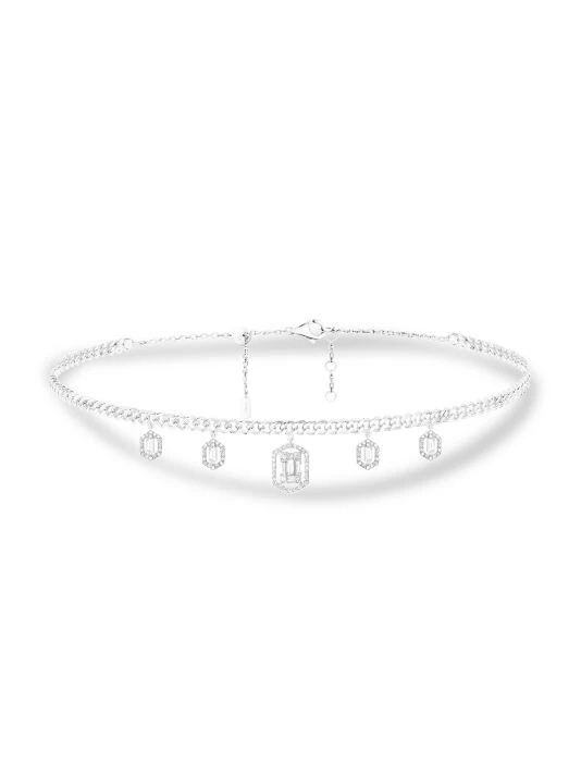 From the Sublissime Collection. This bold curb chain chokers anchors a series of inset hexagonal diamonds, crafted with a signature illusion settings.